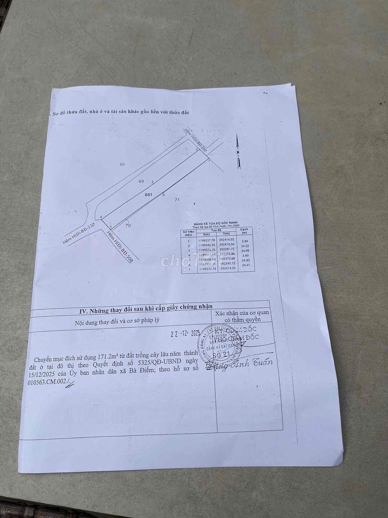 Lô đất thổ cư có diện tích 291,2 m² (5,6m x 52m), tọa lạc tại vị trí khá thuận lợi, gần mặt tiền đường Phan Văn Hớn, hẻm 4m xe tải ra vào thuận tiện, khu dân cư hiện hữu, pháp lý sổ đỏ đầy đủ và có hướng Tây Nam.