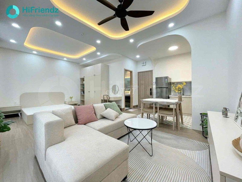 - Nội thất cao cấp, thiết kế hiện đại với không gian mở, trần cao, đầy đủ máy lạnh, máy giặt, bếp điện, hút mùi.