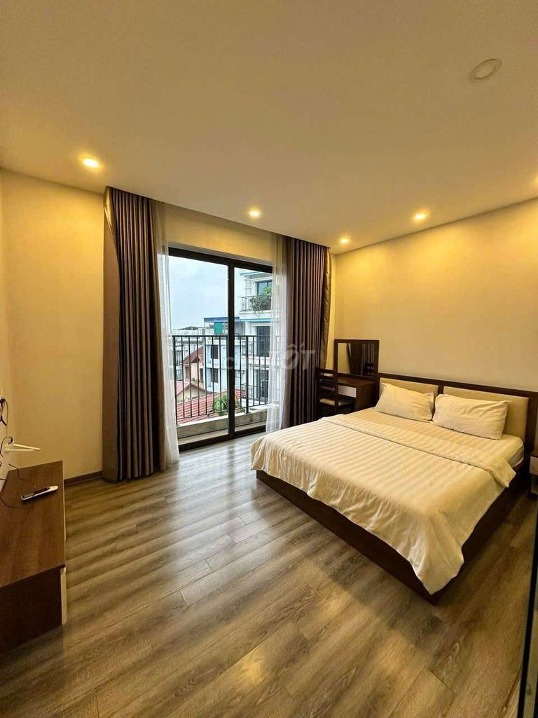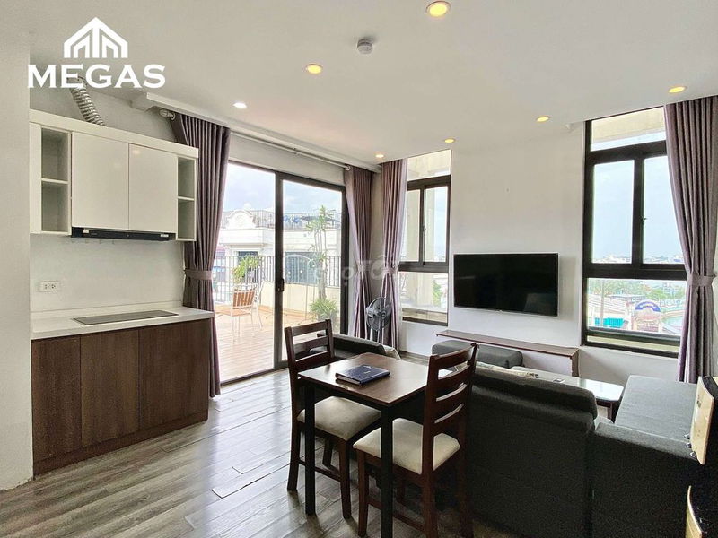 Căn hộ cho thuê tại Lạc Long Quân có diện tích khá rộng (65 m²) so với mặt bằng chung các căn hộ dịch vụ mini 1 phòng ngủ trong khu vực Tây Hồ, thường dao động từ 55 – 70 m². Nội thất đầy đủ và có ban công thoáng mát là điểm cộng lớn, đặc biệt với vị trí view Hồ Tây rất được ưa chuộng.