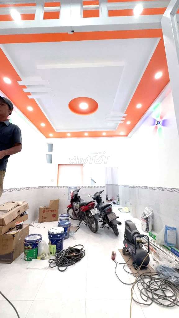 - Nhà xây 1 trệt 1 lầu, có sân trước để xe và ban công rộng, phù hợp nhu cầu ở gia đình nhỏ.