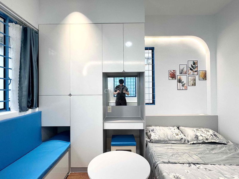 • Nội thất đầy đủ: giường nệm, tủ áo, máy lạnh, tủ lạnh, bàn làm việc, kệ decor, máy nước nóng