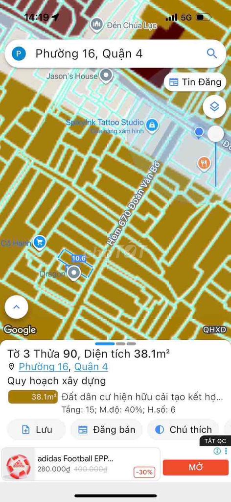 Đoàn Văn Bơ, Quận 4 (tin đăng) 37 4,6 124,32 Nhà trong hẻm, 3 tầng Hoàn công đủ, sổ hồng riêng