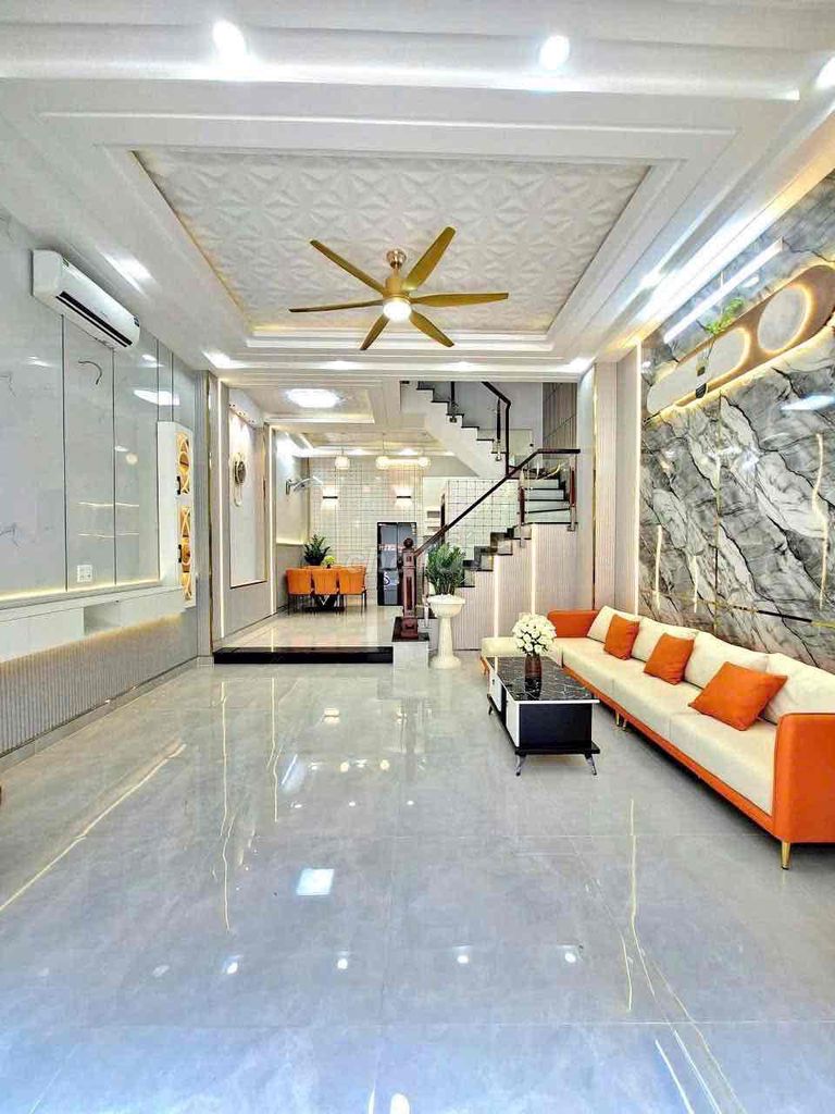 • Nhà xây dựng 3 tầng với tổng diện tích sử dụng lên đến 165 m², có 4 phòng ngủ, 3 phòng vệ sinh, sân thượng trước sau và nội thất cao cấp.