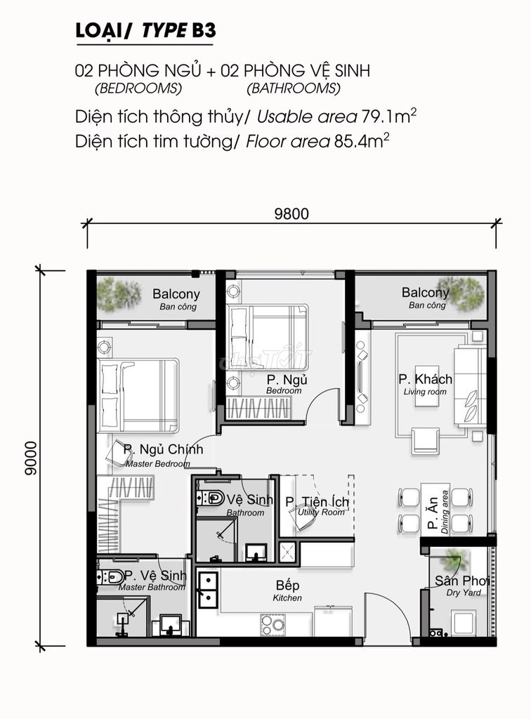 | Diện tích | 85 m² | 70 – 90 m² | 75 – 85 m² |