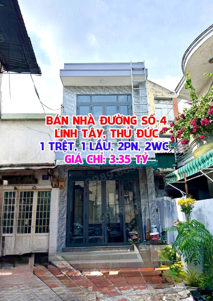 Bất động sản được rao bán là nhà 1 trệt, 1 lầu với diện tích đất 31.8 m² tại đường số 4, phường Linh Tây, Thành phố Thủ Đức. Giá bán được chào là 3,35 tỷ đồng, tương đương khoảng 105,35 triệu đồng/m². Về mặt pháp lý, nhà đã có sổ hồng riêng, rõ ràng, thuận lợi cho việc giao dịch.