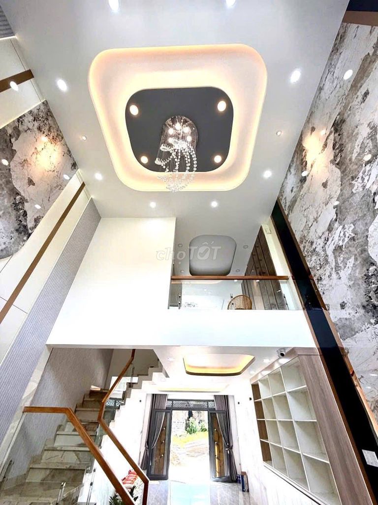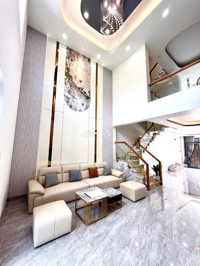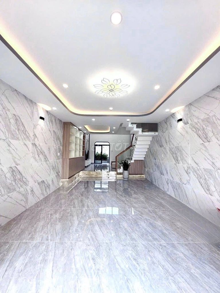- Nhà có kết cấu kiên cố, gồm trệt, lửng, 2 lầu và sân thượng, tổng diện tích sàn sử dụng lớn (300 m²), phù hợp cho gia đình đa thế hệ hoặc kinh doanh văn phòng.