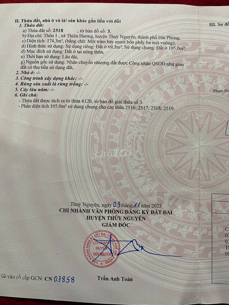 Với mức giá 1,25 tỷ đồng cho diện tích 70 m², tương đương khoảng 17,86 triệu đồng/m², lô đất này thuộc loại đất thổ cư, có sổ đỏ chính chủ và vị trí khá thuận tiện về giao thông (cách đường 203 khoảng 40m, ngõ rộng 3,5m ô tô đỗ tận nơi), nằm trong khu vực xã Thiên Hương, huyện Thuỷ Nguyên.