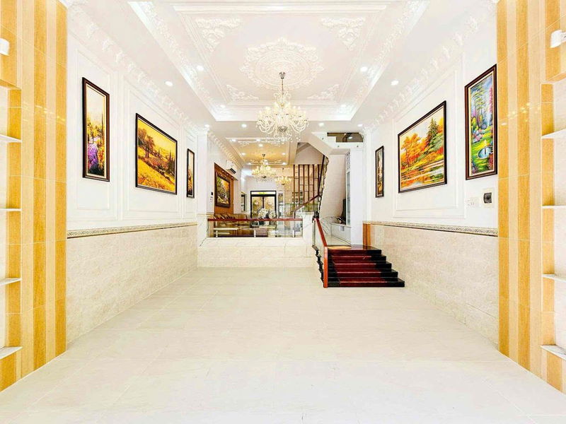 - Nhà gồm: Gara oto đậu xe hơi, phòng khách sang trọng, nhà bếp, 4 phòng ngủ, 5wc và 1 phòng thờ
