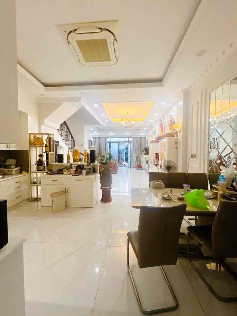 - Nhà có kết cấu kiên cố, 1 trệt 2 lầu sân thượng với 4 phòng ngủ và 6 phòng vệ sinh, phù hợp gia đình đa thế hệ hoặc có nhu cầu phòng rộng rãi.