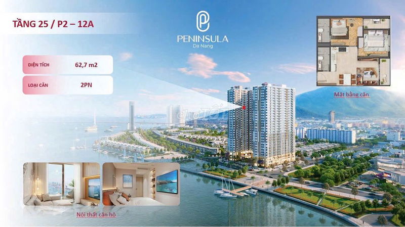 Peninsula Đà Nẵng (block P2, tầng 25) 62,7 68,58 4,3 View sông Hàn, nội thất cao cấp, tiện ích 5 sao, sổ hồng riêng Chưa bàn giao