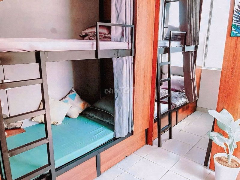 ✅ Giường tầng riêng tư, 1 bàn học tại giường, nệm drap gối, rèm che, 1 tủ quần áo riêng, ổ cắm sạc,...).