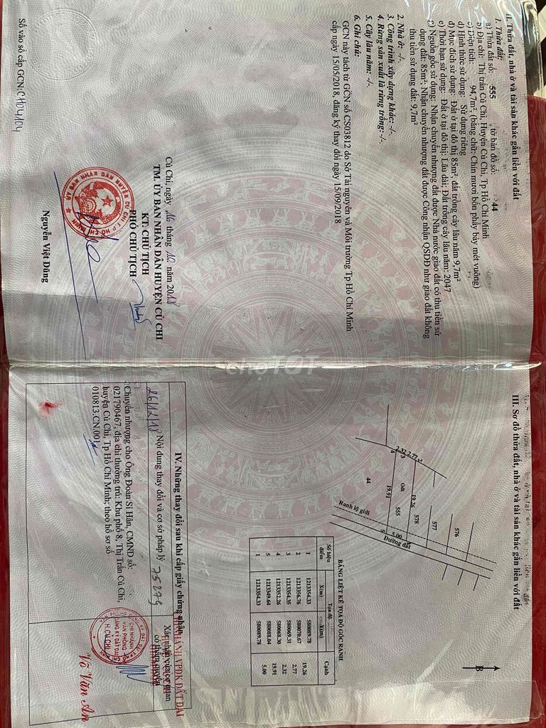 Thị trấn Củ Chi, đất thổ cư, hẻm xe hơi 94,7 2,5 26,4 Vị trí trung tâm, sổ hồng, pháp lý rõ ràng