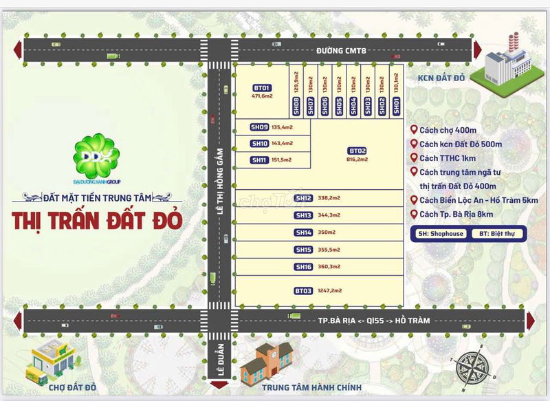 | Vị trí | 2 mặt tiền, xã Phước Long Thọ | 1 mặt tiền, gần KCN Đất Đỏ | Gần biển Phước Hải |
