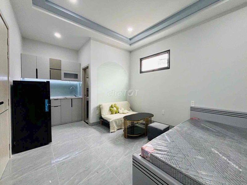 Phòng được trang bị đầy đủ nội thất cao cấp, có cửa sổ trời giúp không gian thoáng mát, giờ giấc tự do và không chung chủ là những điểm cộng lớn, phù hợp với người đi làm hoặc sinh viên cần môi trường yên tĩnh, tiện nghi.