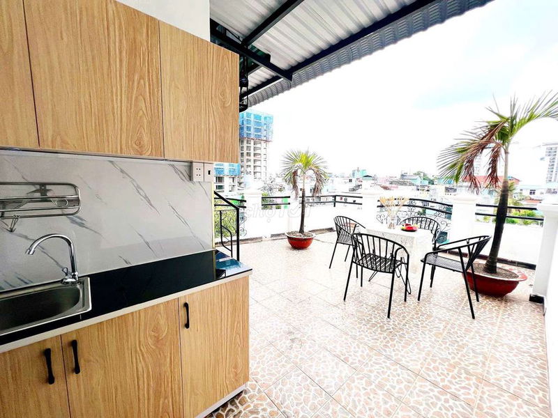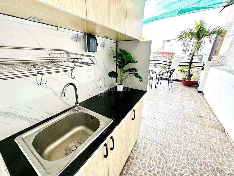 Ưu điểm của căn phòng này là có sân thượng lớn, máy giặt riêng, bếp tách biệt và nội thất đầy đủ, giúp thuận tiện và thoải mái cho người thuê, đặc biệt là nhóm bạn hoặc gia đình nhỏ cần không gian sinh hoạt riêng tư.