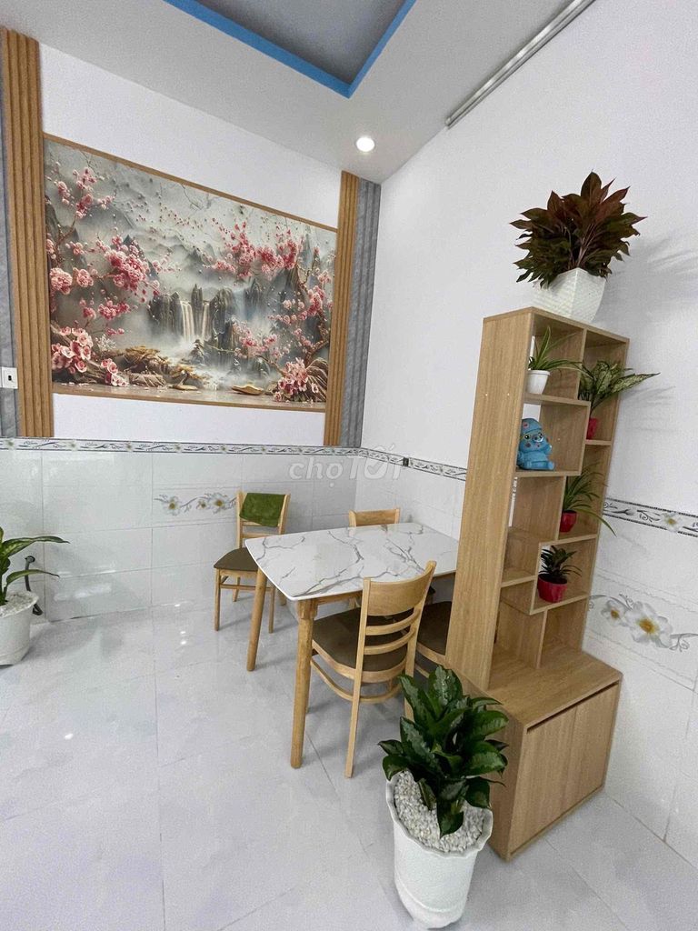 Diện tích 42.5 m² với chiều ngang 5 m và chiều dài 8.5 m, nhà một trệt một lầu với 2 phòng ngủ và 2 phòng vệ sinh, nội thất cao cấp, phù hợp với các gia đình nhỏ hoặc người mua lần đầu.