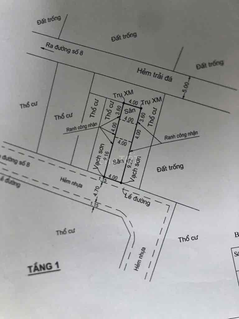 Đường số 9, Phường Linh Xuân 60 3,6 60 Đất thổ cư, hẻm xe máy, sổ vuông 2023