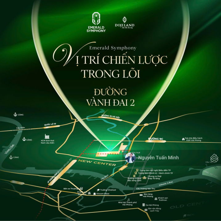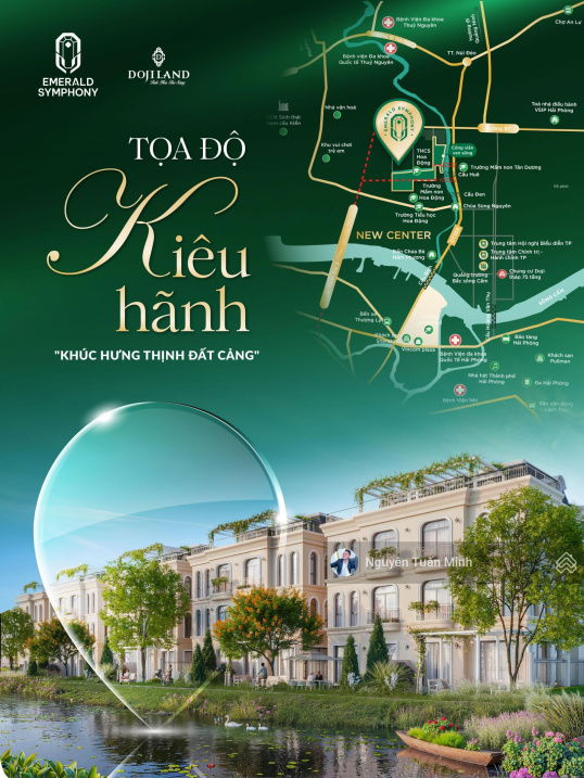 Dự án Emerald Symphony tọa lạc tại trung tâm hành chính mới Thủy Nguyên, một khu vực ven sông Hòn Ngọc đang phát triển mạnh mẽ của thành phố Hải Phòng. Với mật độ xây dựng thấp chỉ 25,8%, cùng hệ thống tiện ích đẳng cấp và không gian xanh lớn, đây là một dự án có nhiều lợi thế về vị trí và chất lượng sống.