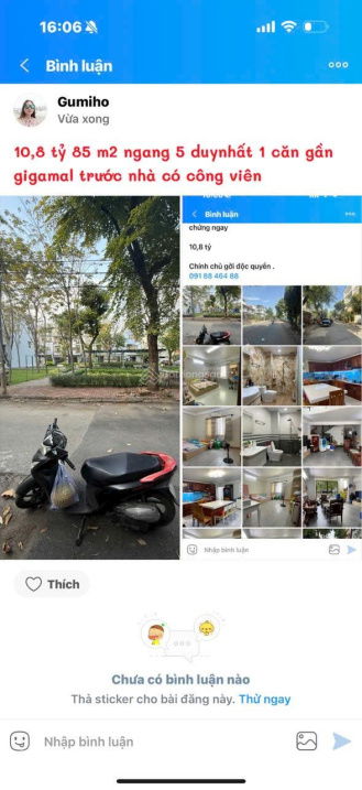 | Tiện ích xung quanh | Đối diện Gigamall, công viên, đường rộng 10m | Gần trường học, hẻm nhỏ 4m | Gần chợ, đường lớn 12m |