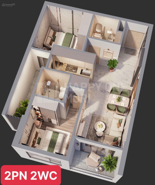 | Happy One Mori | Thuận An, Bình Dương | 66 | 2,55 | 38,6 | 2PN |