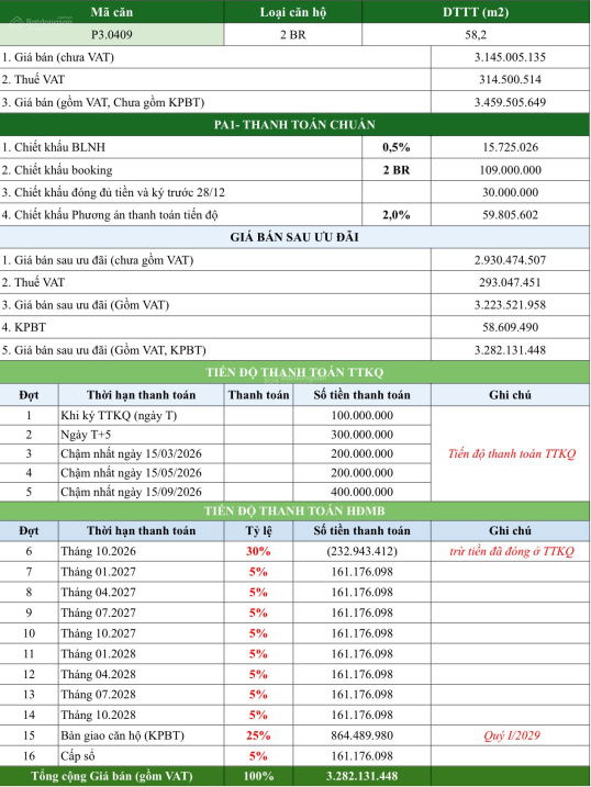 Dự án / Khu vực Diện tích (m²) Loại căn hộ Giá (tỷ VNĐ) Giá/m² (triệu VNĐ) Thời điểm Ghi chú