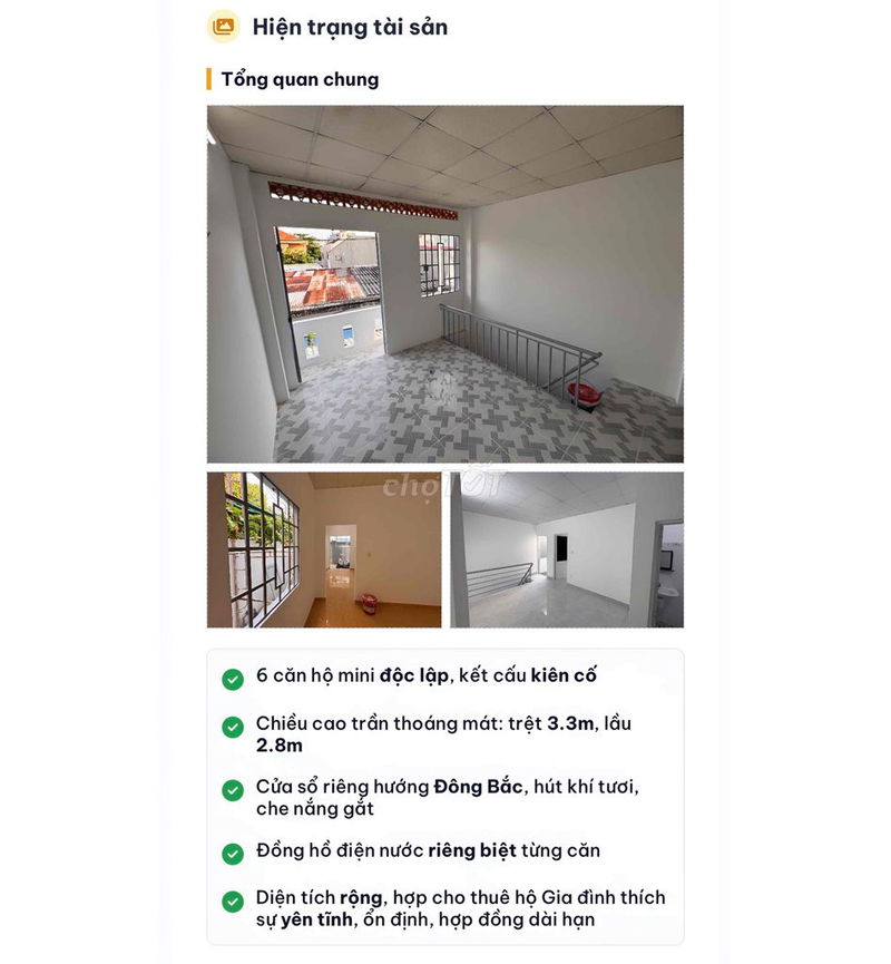 - Tiện ích và công năng: Nhà có 6 phòng cho thuê độc lập với ban công riêng, lối đi và điện nước riêng, mang lại khả năng thu nhập ổn định từ cho thuê.