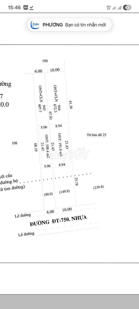Với vị trí mặt tiền ĐT750, xã Trừ Văn Thố, huyện Bàu Bàng, tỉnh Bình Dương, đất thổ cư có diện tích 1.088 m² (chiều ngang 16 m, chiều dài 68 m), mức giá 480 triệu đồng/mét ngang tương đương khoảng 30 triệu đồng/m² (480 triệu / 16 m = 30 triệu/m²). Tuy nhiên, theo dữ liệu chi tiết, giá trên mỗi m² được tính là khoảng 441.176 đồng/m² (441 nghìn đồng/m²), đây là sự chênh lệch cần làm rõ. Có thể người bán nhầm lẫn giữa giá theo mét ngang và giá trên mét vuông.