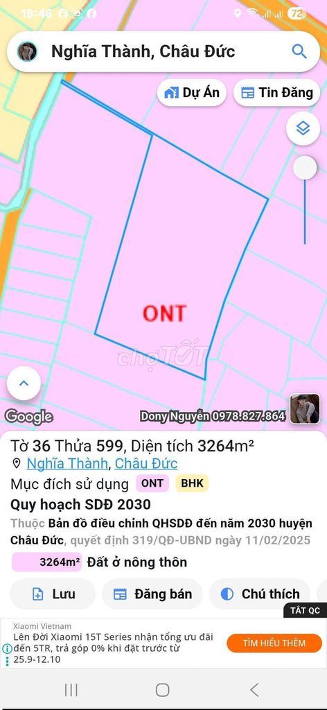 | QL56, Nghĩa Thành, Châu Đức | 5.289 | 1,61 | Thổ cư 600m², còn lại đất nông nghiệp | Đã có sổ hồng riêng | Gần KCN Sonaderzi, mặt tiền 40m |