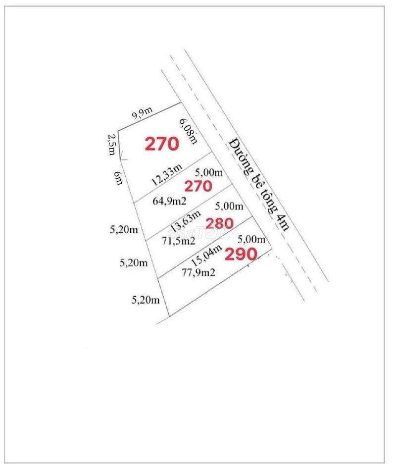 - Diện tích 77 m² (5m x 15m), phù hợp với nhu cầu xây dựng nhà ở hoặc đầu tư nhỏ lẻ.