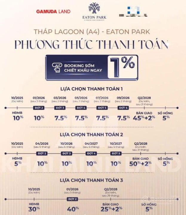 - Nhận Booking 100tr/suất (có hoàn lại) ~ Booking sớm CK 1% và tặng thêm 5 chỉ VÀNG hiện kim