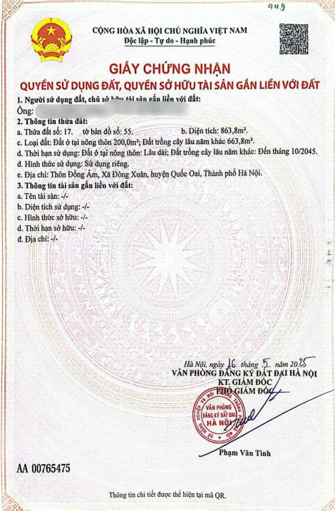 Bán 863m² đất thổ cư Đông Xuân Quốc Oai.