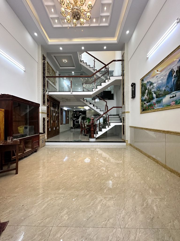 - Diện tích rộng, kết cấu 1 trệt lửng 3 lầu với 5 phòng ngủ, 6 WC, phòng giặt, phòng thờ, sân thượng trước-sau, phù hợp đa mục đích (ở, văn phòng, spa, công ty).