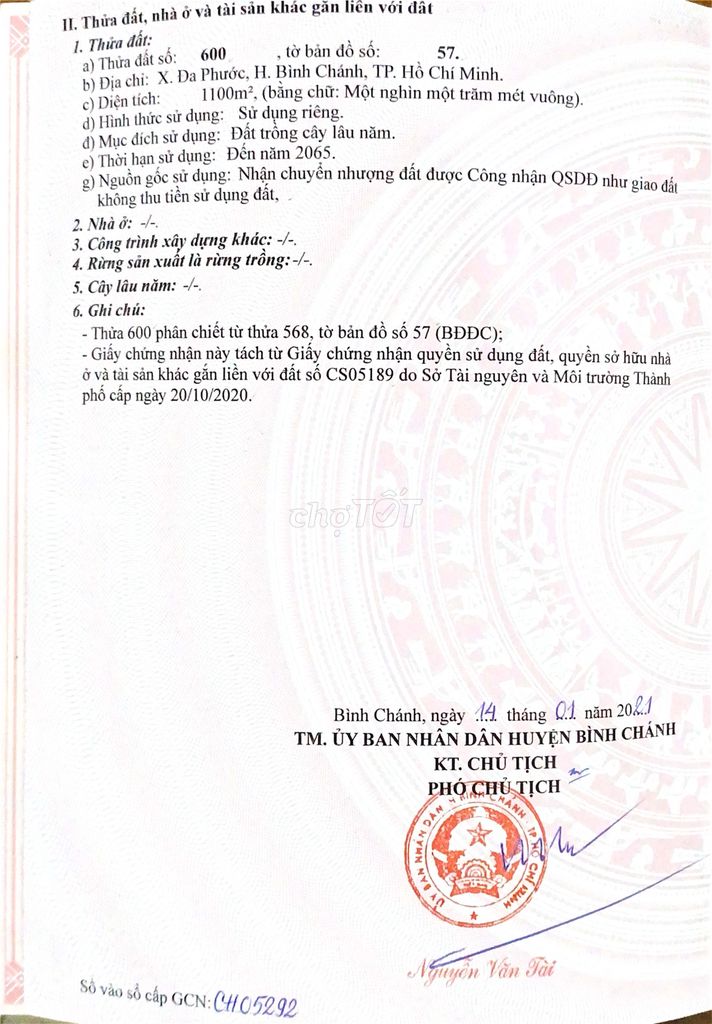 | Xã Đa Phước, Bình Chánh | Đất trồng cây lâu năm, chưa thổ cư | 1000 – 1500 | 4.5 – 5.5 | 4.5 – 7.5 | 6 tháng gần đây | Đã có sổ, chưa thổ cư, có ao, chòi tôn |