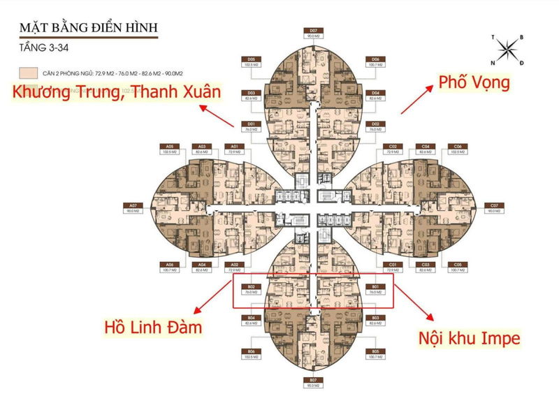| Diện tích | 82,6 m² | Diện tích phổ biến căn 2PN từ 70-90 m² | Diện tích hợp lý, phù hợp nhu cầu gia đình từ 3-4 người. |