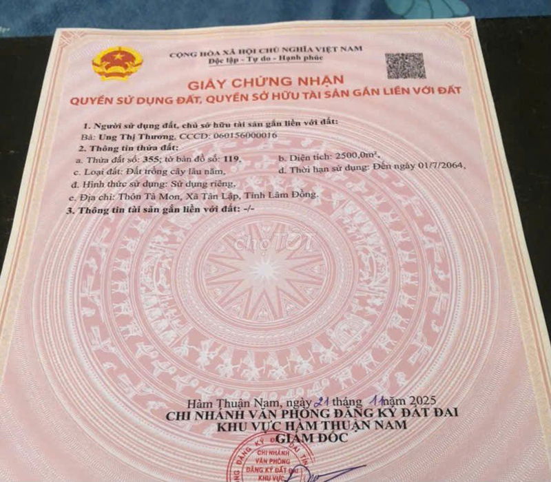 Check giá "Bán 2500 m2 tại thôn Tà Mon, km37, có sẳn thanh long và xoài, khu DC"