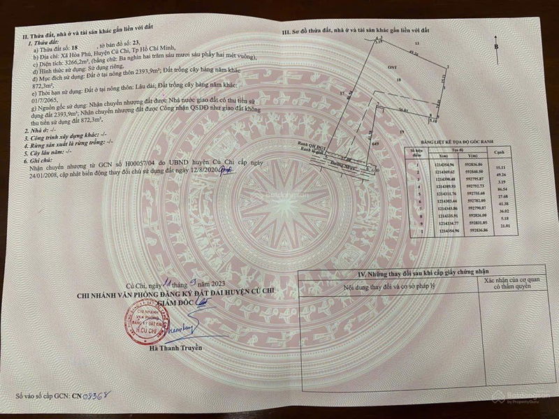 Check giá "Bán 3266m2. 2393.9m2 thổ cư. Đất làm nhà xưởng tại Đường Huỳnh Minh Mương, Hòa Phú, Củ Chi, 20,8tỷ"