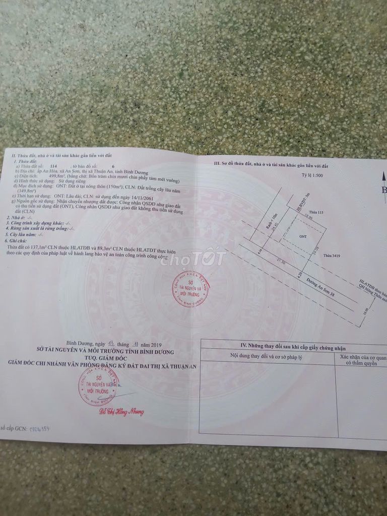 | An Sơn, Thuận An (mặt tiền đường nhỏ) | 250 | 11 | 2.75 | 2024 Q1 | Đất 1 mặt tiền, đường nhựa nhỏ |