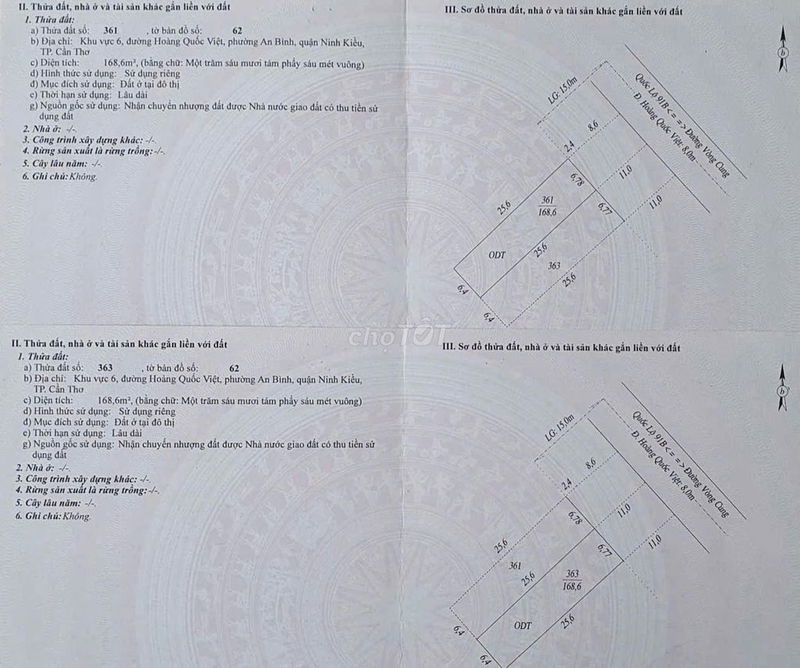 | Đường Hoàng Quốc Việt, Quận Ninh Kiều, Cần Thơ | 500 | 58 | 29 | 2024 |