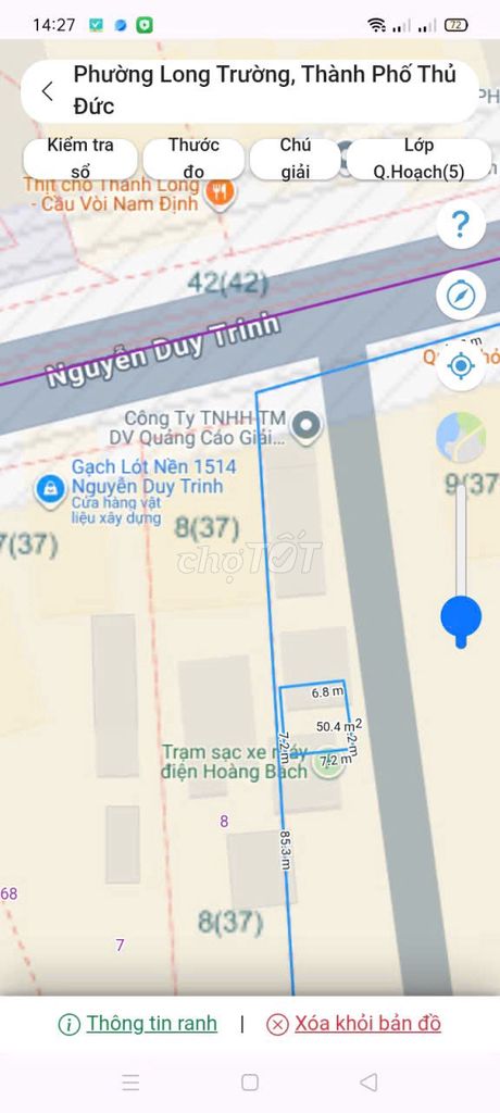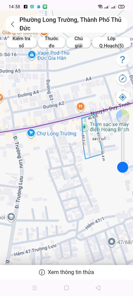 Giá đất trung bình tại Phường Long Trường, gần đường Nguyễn Duy Trinh dao động trong khoảng 60 – 70 triệu/m², tương đương với mức giá người bán đưa ra (65,48 triệu/m²). Điều này cho thấy mức giá cơ bản phù hợp với thị trường cho một lô đất thổ cư có sổ đỏ, đường hẻm xe hơi rộng 6m.