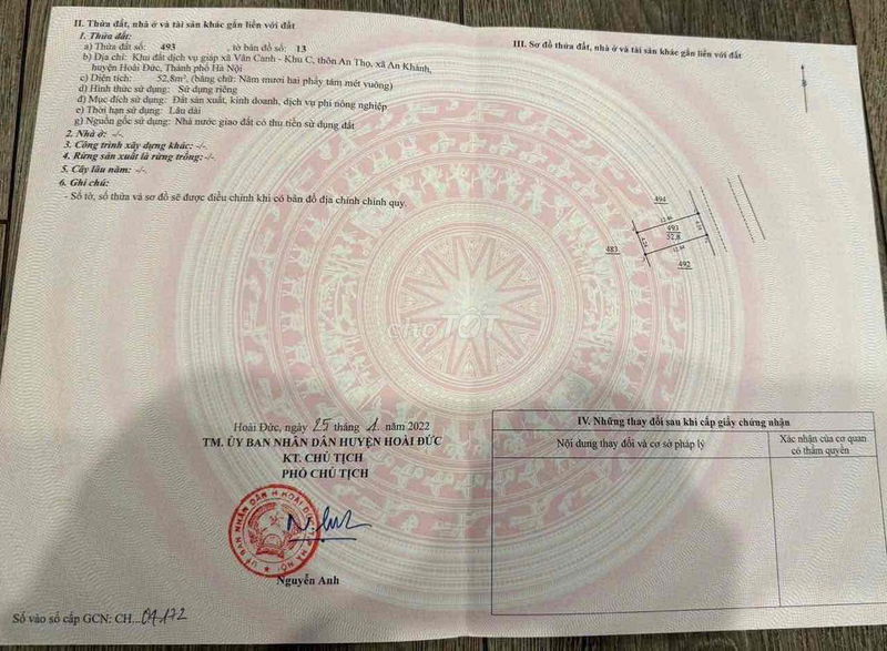 Mức giá 220 triệu đồng/m² được chào bán cho lô đất 52 m² tại xã An Khánh, huyện Hoài Đức, Hà Nội là không hợp lý khi so sánh với các dữ liệu thực tế gần đây tại khu vực và đặc điểm đất.