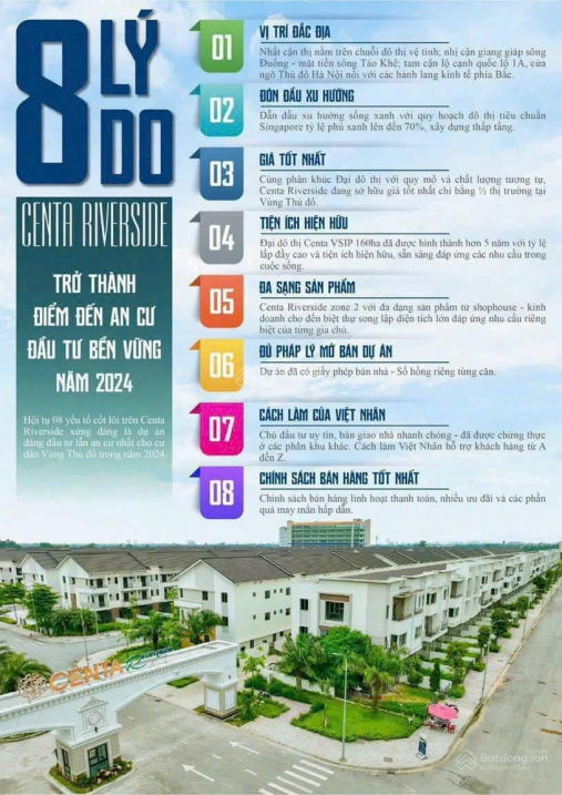 | Vị trí | Centa Riverside, Hữu Nghị, Phù Chẩn, Từ Sơn, Bắc Ninh | Các dự án biệt thự tại Bắc Ninh thường ở vùng ven hoặc xa trung tâm | Gần VSIP, kết nối sân bay Gia Bình, và cách Hà Nội khoảng 11km giúp tăng giá trị lâu dài |