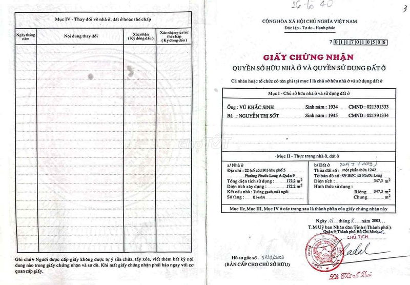 Đã có sổ