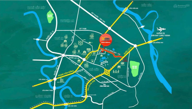 Vị trí dự án tại khu vực Dĩ An, Bình Dương, liền kề TP.HCM với kết nối giao thông thuận lợi qua tuyến Metro số 1, Xa Lộ Hà Nội và Quốc Lộ 1K giúp cư dân dễ dàng di chuyển đến trung tâm TP.HCM, đây là điểm cộng lớn về tiềm năng phát triển và tăng giá trong tương lai.