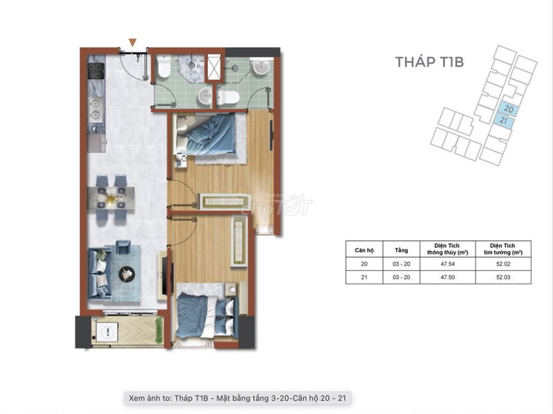 - Diện tích 52,02 m², 2 phòng ngủ, 2 phòng vệ sinh phù hợp cho gia đình nhỏ hoặc người trẻ.