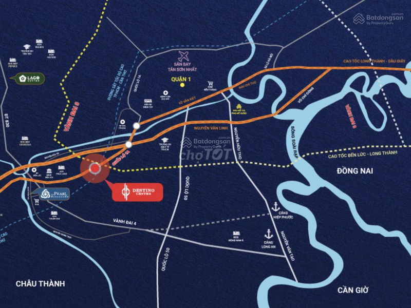 Destino Centro tọa lạc mặt tiền Quốc lộ 1A, xã Mỹ Yên, huyện Bến Lức – khu vực có vị trí kết nối thuận tiện đến TP.HCM (khoảng 25 phút đến Quận 1 và Phú Mỹ Hưng). Khu Tây TP.HCM và Long An đang được quy hoạch phát triển mạnh mẽ, tạo tiềm năng tăng giá trong trung và dài hạn.