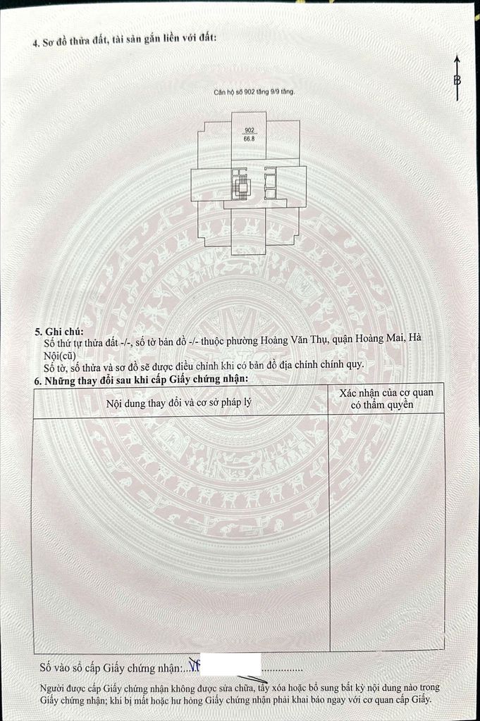 Căn hộ có diện tích 66,8 m², 2 phòng ngủ, 1 phòng vệ sinh, hướng ban công Nam, nằm ở tầng 9 của block 1, thuộc quận Hoàng Mai, Hà Nội. Tình trạng căn hộ là bàn giao thô với sổ hồng riêng, đã được bàn giao.