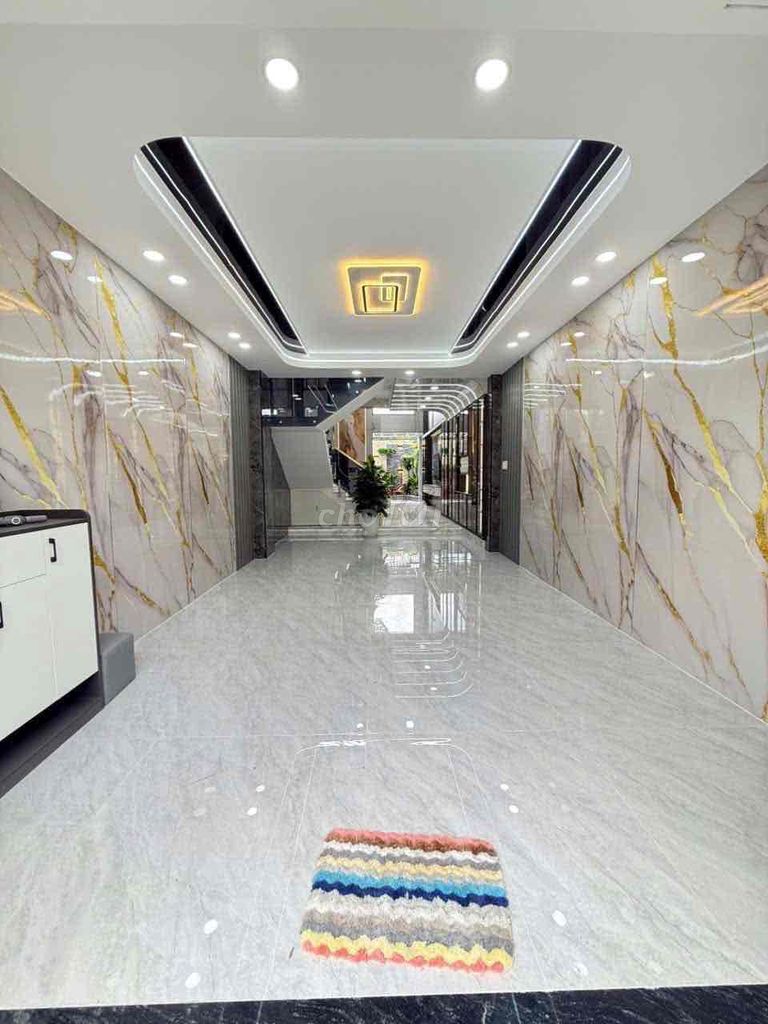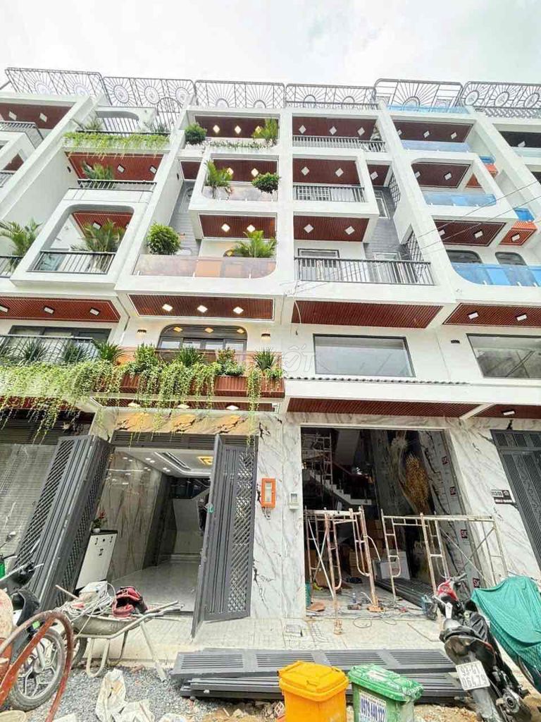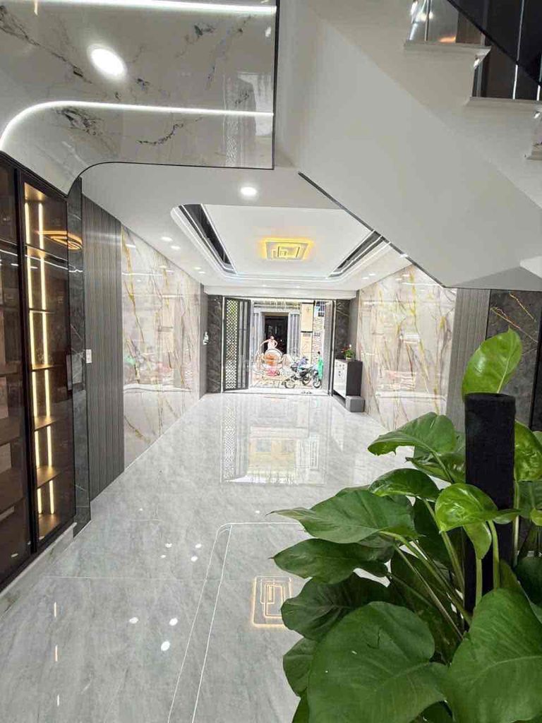Căn nhà được xây dựng 5 tầng, có gara xe hơi, 5 phòng ngủ, 6 toilet, phòng thờ, phòng xông hơi, sân thượng trước sau và ô chờ thang máy, cùng với nội thất cao cấp tặng kèm. Hẻm nhựa 10m, xe hơi ra vào thoải mái, khu vực dân trí cao, an ninh tốt. Vị trí cách trung tâm thành phố khoảng 5 phút lái xe, gần các tiện ích như Bệnh viện Quân y 175, sân bay Tân Sơn Nhất, trường học các cấp, và các chuỗi cửa hàng tiện ích.