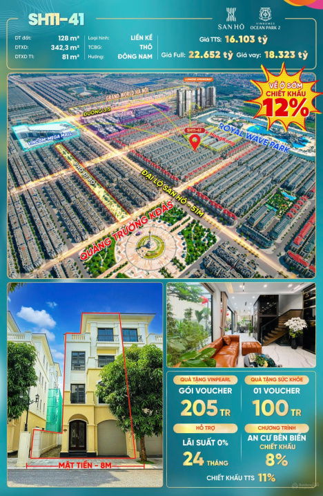 Biệt thự song lập Vinhomes Ocean Park 1 130 95 12,35 Khu đã phát triển, đầy đủ tiện ích 2024 Q1