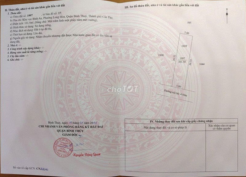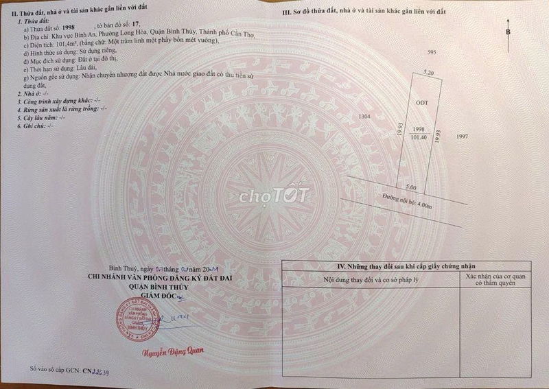 | Giá/m² | 20,20 triệu/m² | 12-16 triệu/m² (đất thổ cư khu Bình Thủy đường nhỏ, hẻm xe hơi) | Giá chào bán cao hơn khoảng 25-70% so với mặt bằng chung |