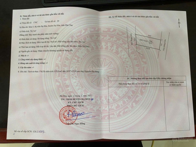 Mức giá 980 triệu đồng cho diện tích 76 m² tương đương khoảng 12,9 triệu đồng/m², đây là mức giá khá cao so với mặt bằng chung đất thổ cư tại khu vực thị trấn Hạ Hòa, tỉnh Phú Thọ hiện nay.
